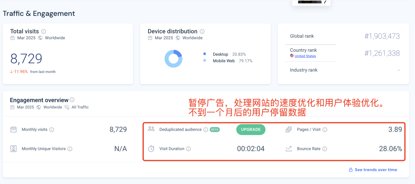 2)優化后:20253月,停留時間超過2分鐘,提高了200%;跳出率28%,降低了超過50%